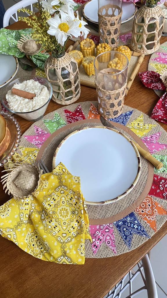Guardanapo estampa bandana amarela em tecido tricoline.