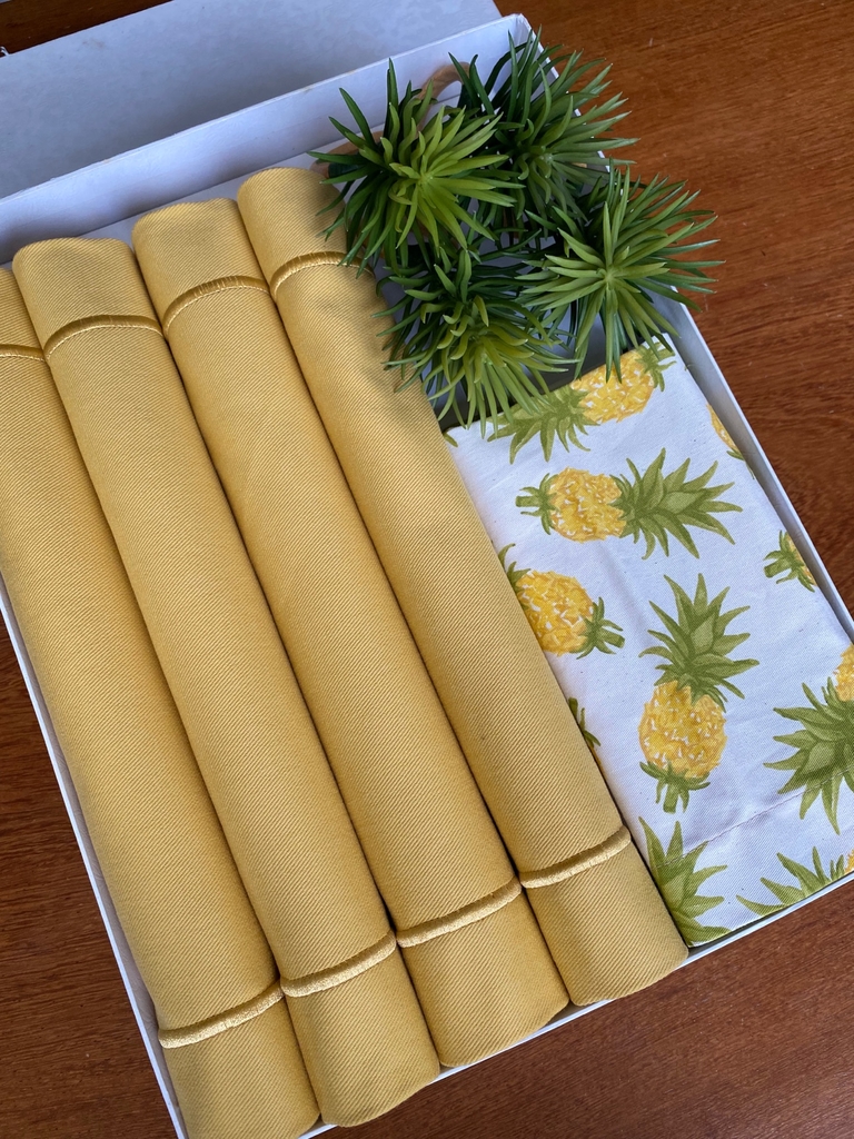 Guardanapo com estampa de abacaxi amarelo em tecido sarja.
