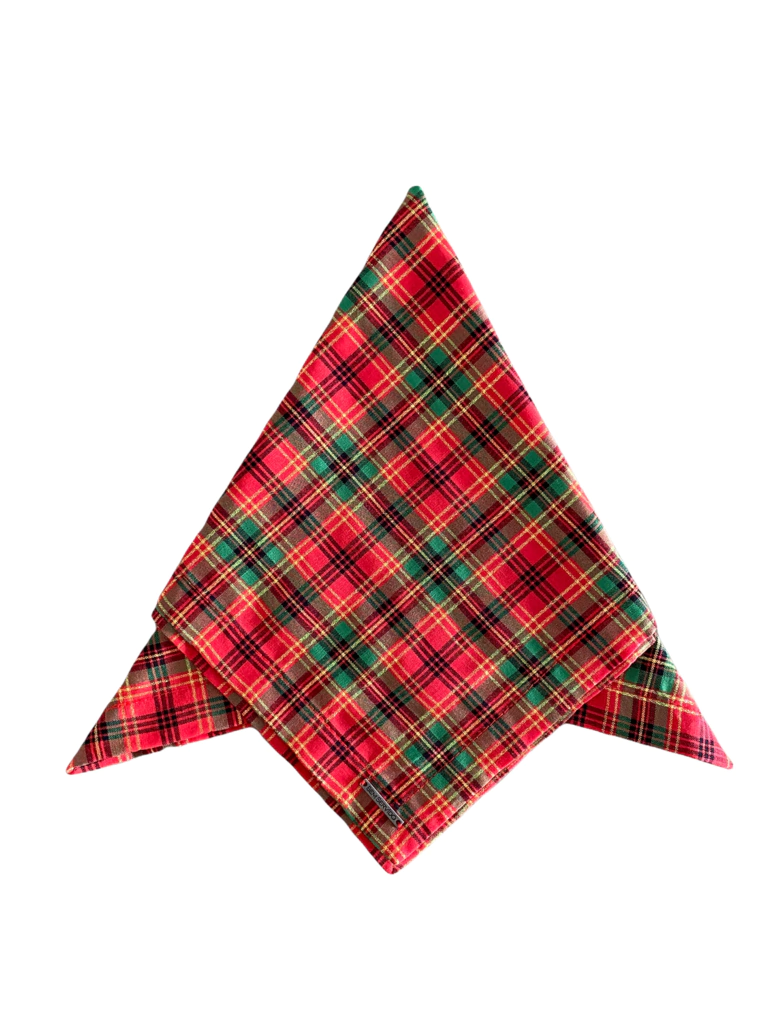 Guaradanapo tricoline estampa xadrez fio tinto vermelho e verde com fios dourados.