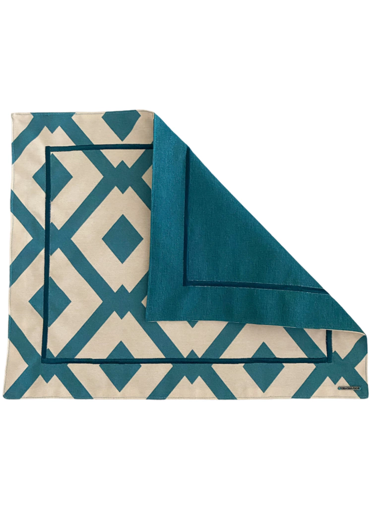 Jogo americano dupla face em tecido impermeável, bordado por todo contorno da peça.