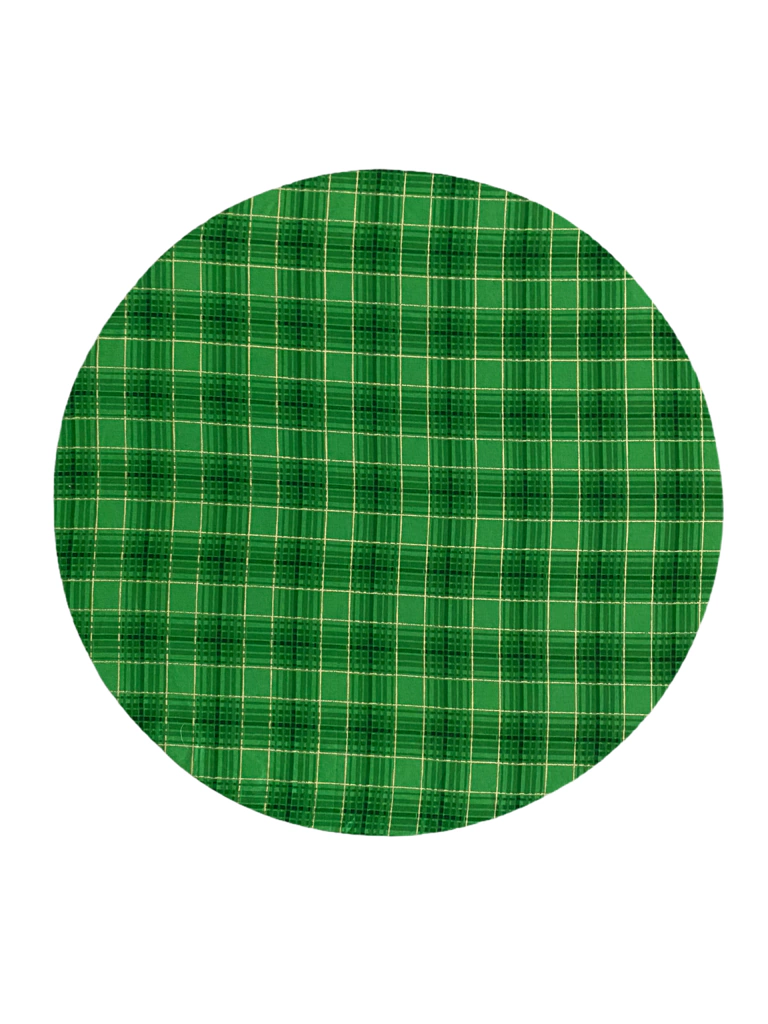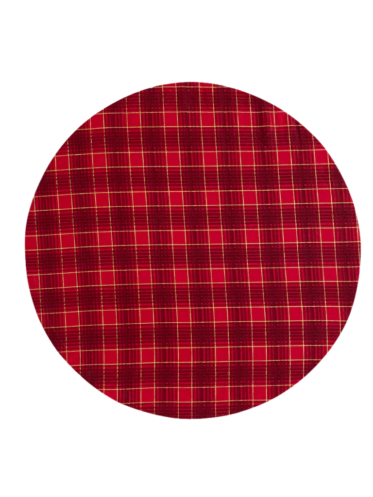 Kit 4 capas para sousplat em tecido tricoline 100% algodão, de estampa xadrez, com elástico, veste base de 35 centímetros de diâmetro.
