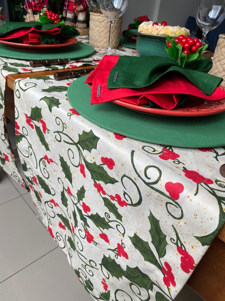 Trilho em sarja tecido semi impermeável estampa azevinho Medidas: 1,60cm x 0,45cm Composição: Sarja 100% algodão